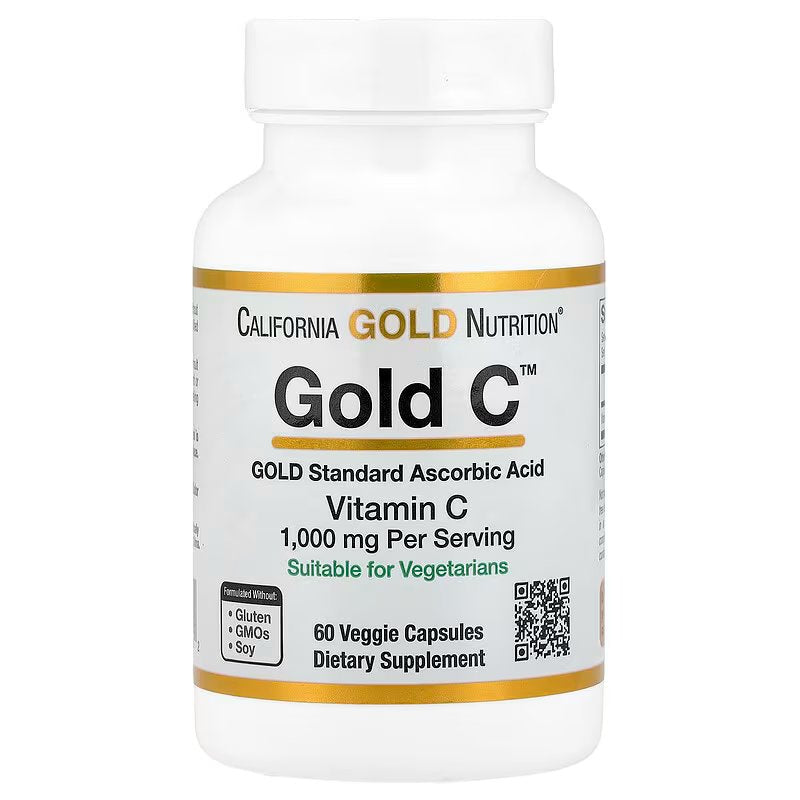 California Gold Nutrition Gold C™ features USP Grade vitamin C (as ascorbic acid) in veggie capsules. This supplement is suitable for vegetarians and formulated without gluten, GMOs, or soy.