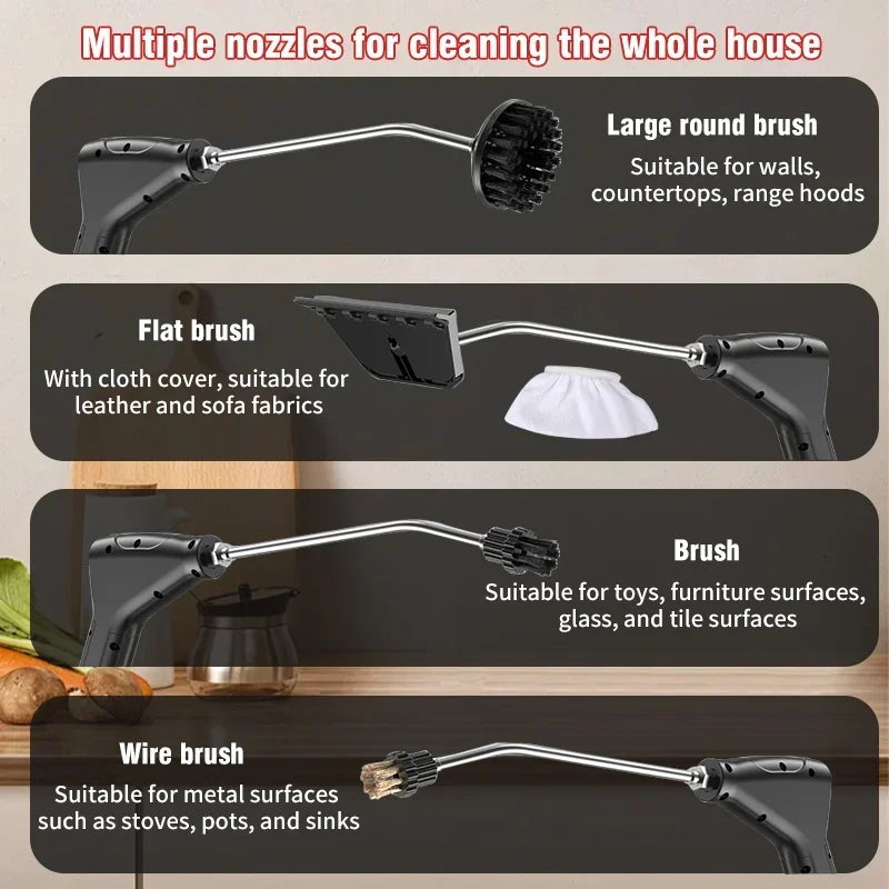 Perfect for cleaning air conditioners, kitchen hoods, ovens, tiles, grout, bathrooms, windows, and car interiors, this multifunction steam cleaner delivers deep-cleaning performance in seconds.