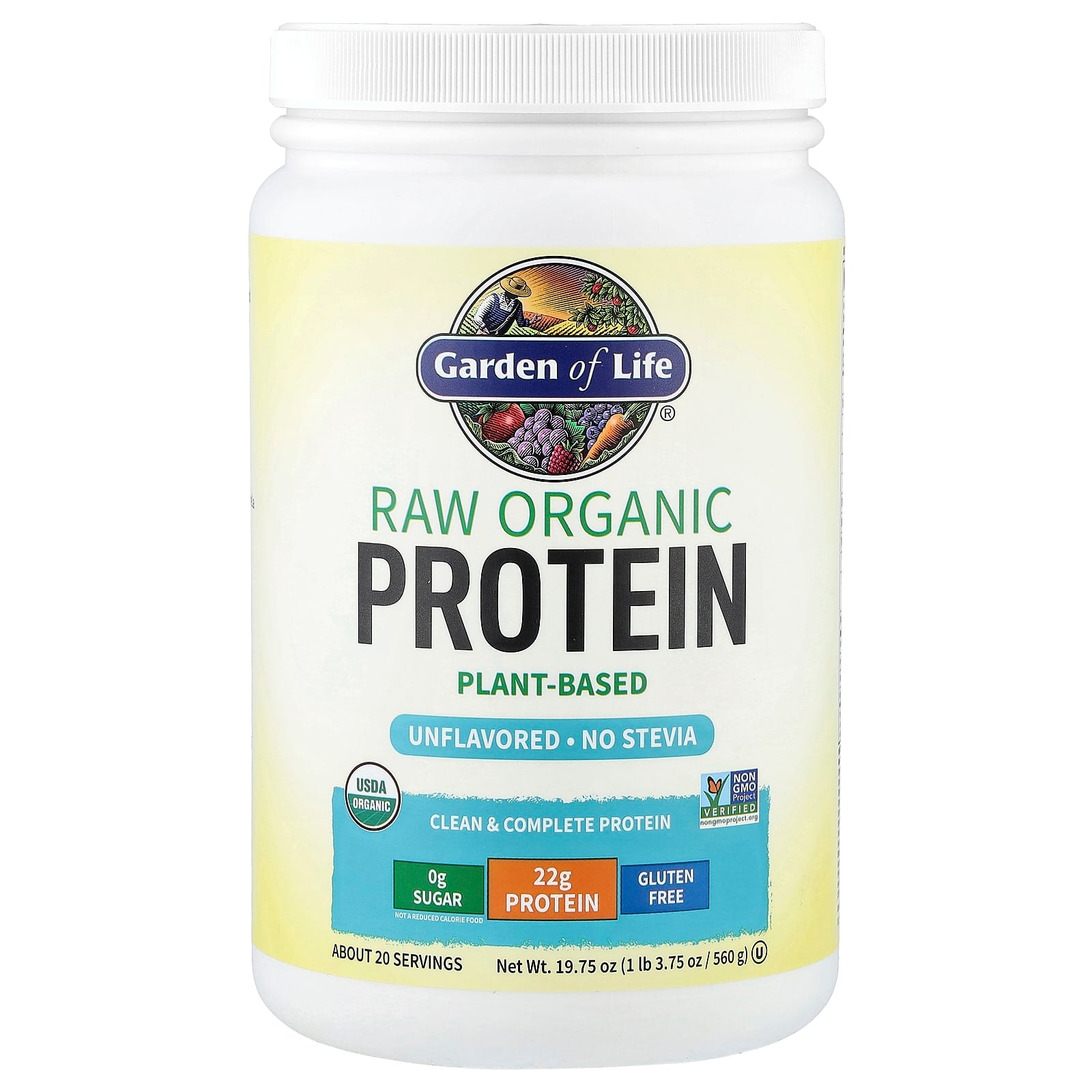 Garden of Life RAW Organic Plant-Based Protein Powder, Unflavored, 19.75 oz