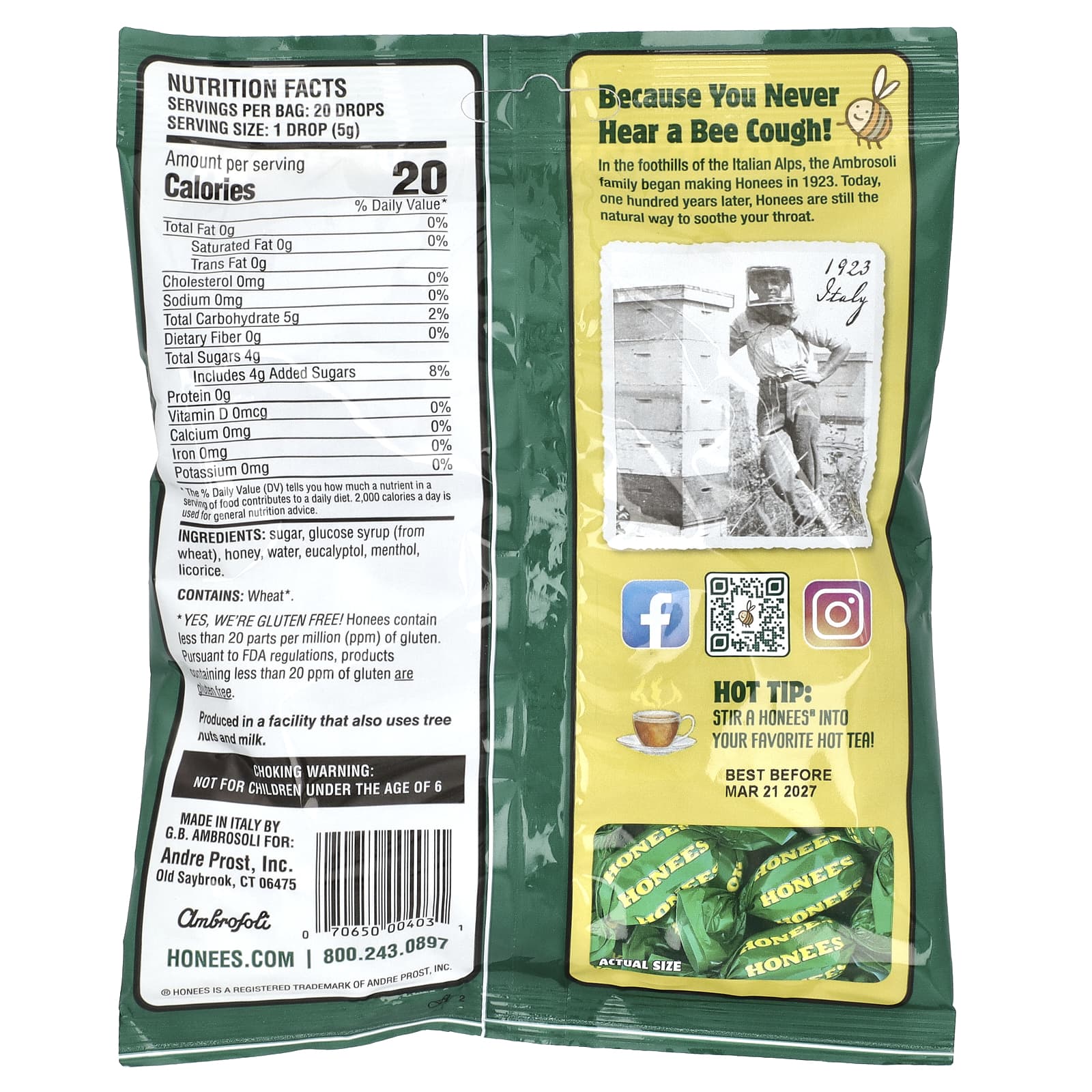 | Ingredients | Honey, menthol, eucalyptus oil, sugar, glucose syrup, licorice |